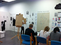 Three other students and I were chosen from my university to help put on the exhibition. We came up with new and innovative ways to get the general public involved in creating fashion illustrations. The aim was to get them to loosen up and use unexpected techniques and shapes juxtaposed to create a wonderful image.